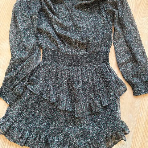 Ubrukt blomstrete kjole med drapering fra midjen.