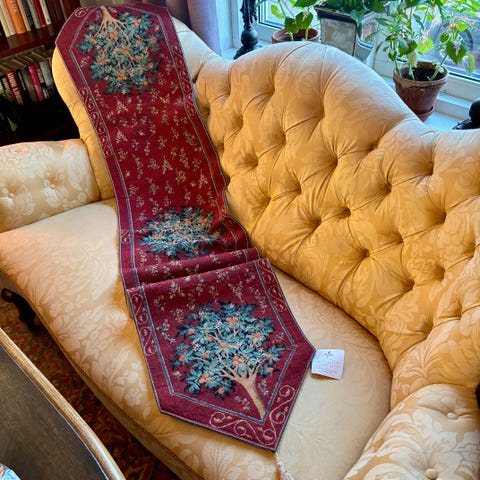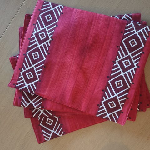 4 ubrukte bordbrikker og løper fra sør afrikansk tekstilkunstner Carole Nevin archive collection. Brikkene er ikke brukt