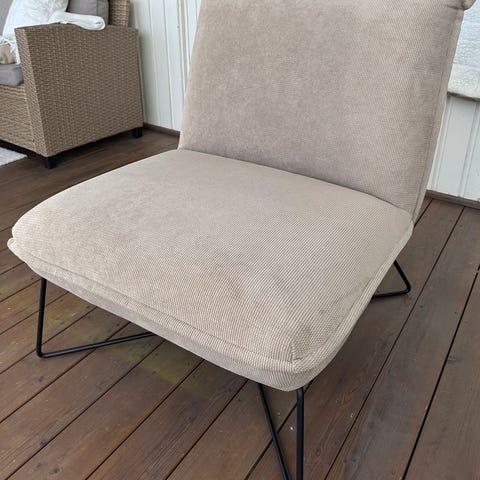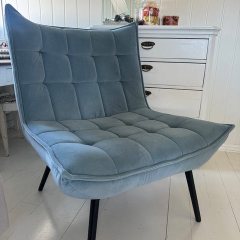 Stolen er digg å sitte i, god plass til å krølle bena oppi, med et strikke tøy, en god bok feks.