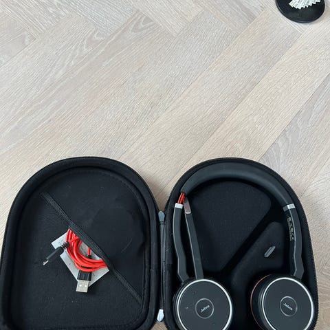 Jabra hodetelefoner med innebygd mikrofon. Hodetelefonene er svarte og leveres med en ladekabel. Brukt svært få ganger.