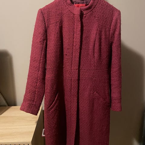 Hugo Boss Kåpe i gul farge, laget av ull. Passer til dame og har størrelse 40. Kåpen har to lommer foran og knappelukking. Materialet gir god varme og komfort.