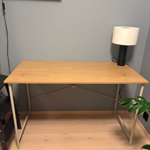Lite brukt Abbetvedt skrivebord i eik og svart. Kun brukt en kort periode. Skrivebordet har ingen synlige bruksmerker.