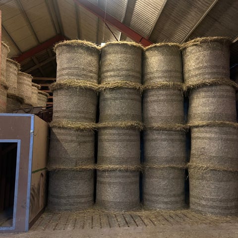 Selger tørt høy i rundball. Har ikke for prøver. Har også store halm baller av type hvete og havre. 500 kr pluss moms for halm. 550 pluss moms for høy. Kan også ordne frakt mot tillegg 😊