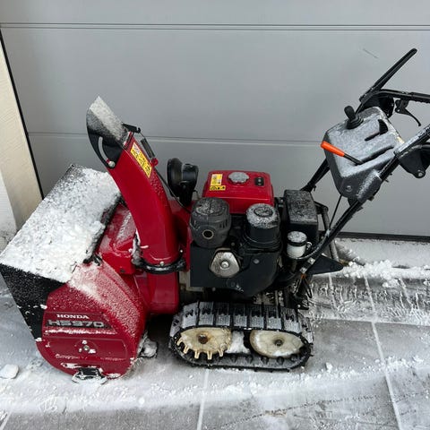 Honda snøfreser med beltedrift selges. Freseren har elstart og arbeidslys. 2 gir frem og 1 revers. Denne modellen er den største motoren på 4,4kw for denne serien.