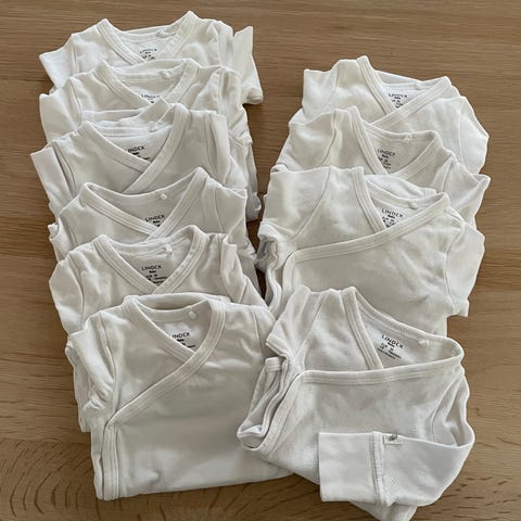 2 bodyer fra Lindex i str. 56 med søte dyremotiv. Passer både farge beige. Disse oppleves som gode i str og vokser med baby da ermene kan brettes ned og forlenget knappelukking.