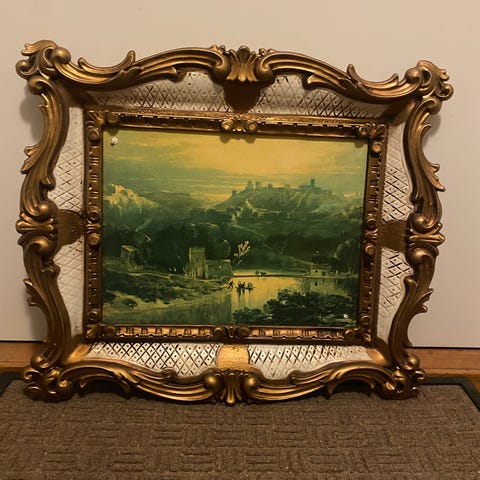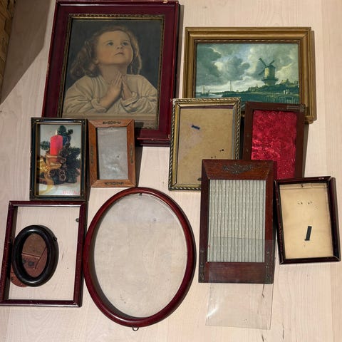 2 oval rammer og en firkantet. De er fine for å være så gamle, og det som må fikses er bakside og ikke noe som ikke kan ordnes. Størrelsen er 23x17cm, den firkantet er mindre.