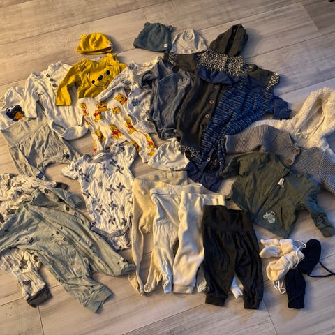 En fin klespakke som er nøytral i størrelse 56. Ingen merker/ flekker som jeg kan se.