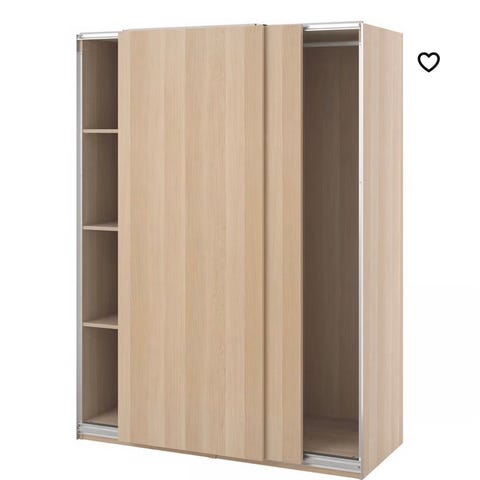 OBS: Siden jeg har hatt skapet montert helt opp til taket mangler det et par skruer for montering av skinnen dørene henger på, men det har ikke vært et problem så lenge jeg har hatt det. Reservedeler fåes kjøpt fra IKEA.