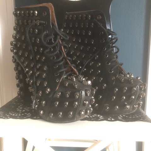 Brukte ankel støvletter med nagler bak, tøffe sko til både bukse og skjørt/kjole.