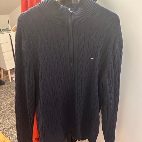 Hilfiger Denim genser med krage (str XL). Genseren oppleves som liten i størrelsen, minner mer om en M/L størrelse.