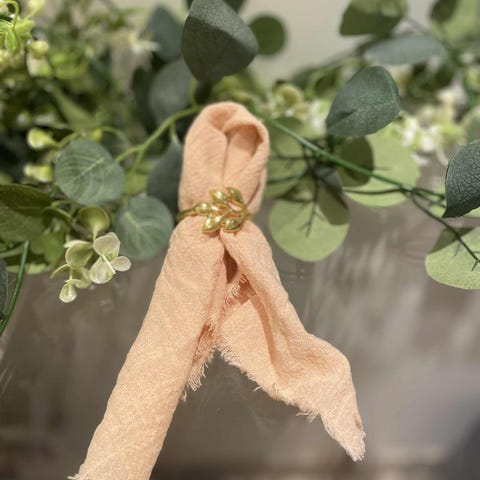 9 stykk grå tøyservietter og 9 stykk gullfargede serviettringer som på bilde selges samlet. De er helt ubrukt.