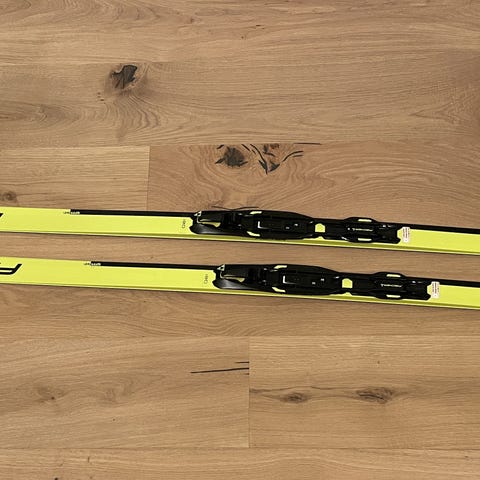 Bindingene er innstilt på str 36-38, men kan justeres ytterligere i skostørrelse. Vekt da disse ble kjøpt var 55 kg.