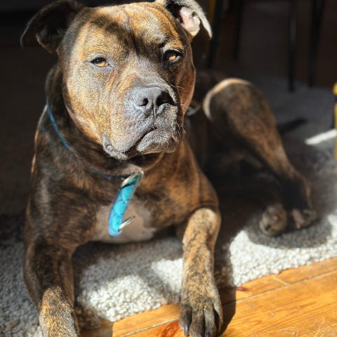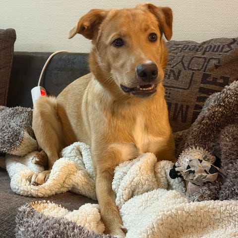 Hun er vant til andre hunder,liker og kjøre bil og være med på alt.