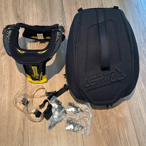 Selger Leatt brynje og nakkekrage. Dette var brukt av sønnen vår fra han var 10-14 år. Sender også med et par albuebeskyttere.