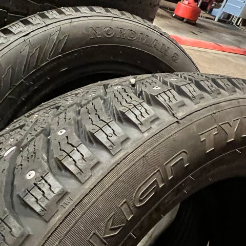 Ser fine ut, bra med mønster igjen. Brukt 1-2 sesonger når de var nye. Produsert 2015/2016. Etter dette lagret i garasje.