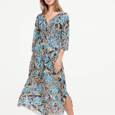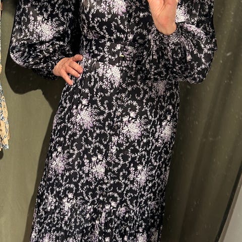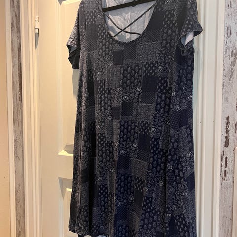 Kun brukt en gang og trenger derfor en ny eier! Veldig lett og luftig materiell til varme sommerdager. Stilrent mønster. God i størrelsen da det er strikk i ryggen og justerbar stramming foran ved puppene!
