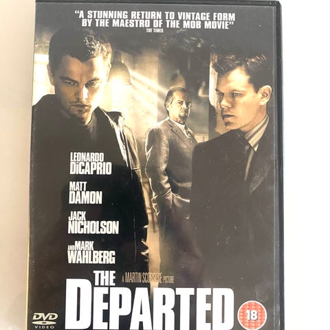 The Departed DVD Two Disc Edition. Inneholder filmen The Departed med Leonardo DiCaprio, Matt Damon og Jack Nicholson. DVD-en er en to-disc utgave med ekstramateriale. Filmen er en kriminalthriller regissert av Martin Scorsese.