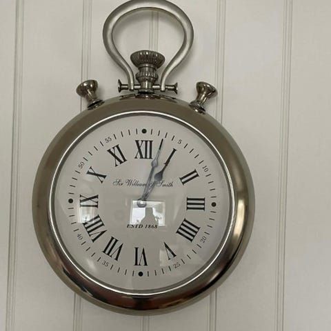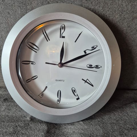 Stor, elegant og stilig veggklokke fra Home Collection. Fungerer som den skal. Drives av 1 stk AA-batteri.