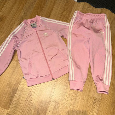 Adidastreningsoverdel og bukse i rød farge, størrelse 104. Passer for både gutter og jenter. Laget i materiale egnet for trening og fritid.