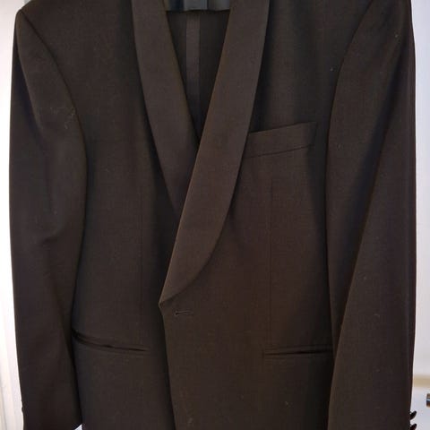 Hugo Boss Chaplin/Charlie M smoking i svart farge, laget av ullmateriale. Smokingen er størrelse 50 og er designet for menn. Jakken har klassisk dressjakke design med knapper på ermet og lukkemulighet foran.
