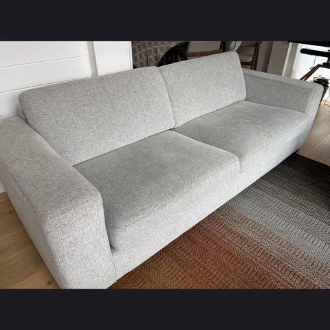 Sofa i veldig god stand. Kjøpt på Bohus for noen år siden. Levd i et røykfritt og dyrefritt hjem. Nesten ingen slitasje og fri for nupper(valgte å oppgradere til mer slitesterkt stoff). Veldig slitesterkt stoff. Mulig å justere armlenene opp og ned etter ønsket behov. Sjesalongen er 150cm dyp og 115 cm bred. Sofaen er også myk og god å sitte i. Sofaen kan deles i to deler for lettere frakt. Selger sofaen pga den tar mye plass og flytter inn i ny leilighet med mindre stue. Kjøper må hente sofaen! Ikke levering. Er mulig å se på sofaen/prøvesitte før kjøp dersom ønsket.