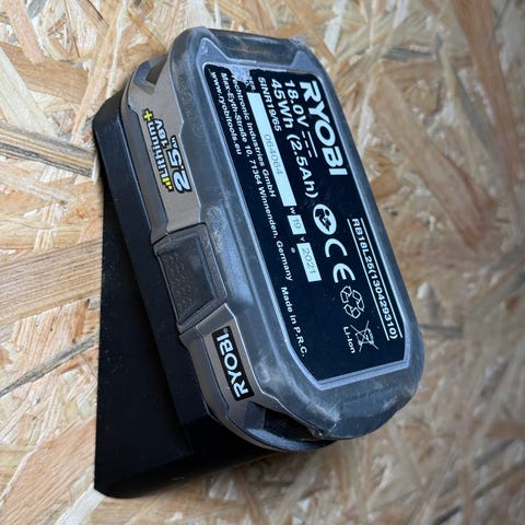 Veggfeste til Ryobi 18V batteri – 3D-printet i PETG