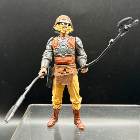 Pinnene bak på beina og lomme til pistolen er knekt men den ser fin ut på utstilling. Følger med ekstra hode og ganske som ikke er på bildet.