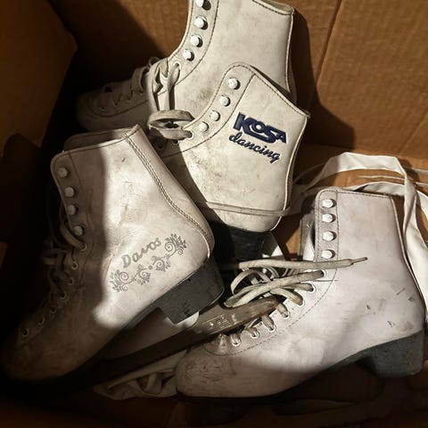 Godt brukte danseskøyter gis bort, solide.