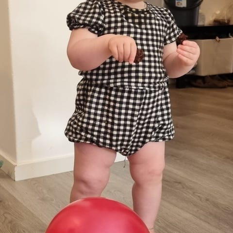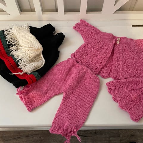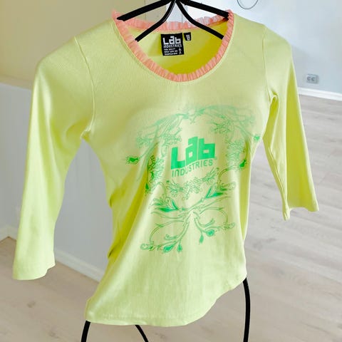 Vintage barnegenser i størrelse 160 laget av bomull. Genseren har lilla farge med blomsterprint på ermene, og knappestolpe foran (noe farge på knappene er borte, se bilde). Retro, 90's, roser, rosa,