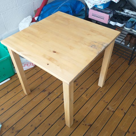 Obs at bordet er satt sammen av to bord - se detaljbilde av skjøten i bordplaten.