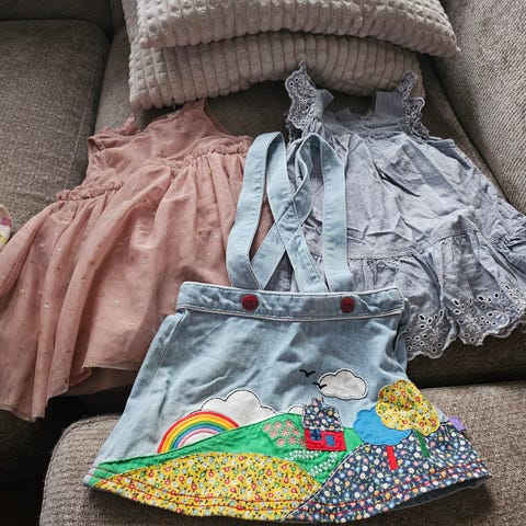 Selger klespakke i str 74-80. Nattøy og kjole er vasket men aldri brukt.