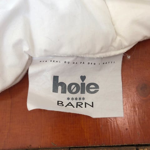 Selger babydyne fra Høie, 80 x 100 cm. Kan vaskes på 60°. Pent brukt kun på besøk hos besteforeldre.