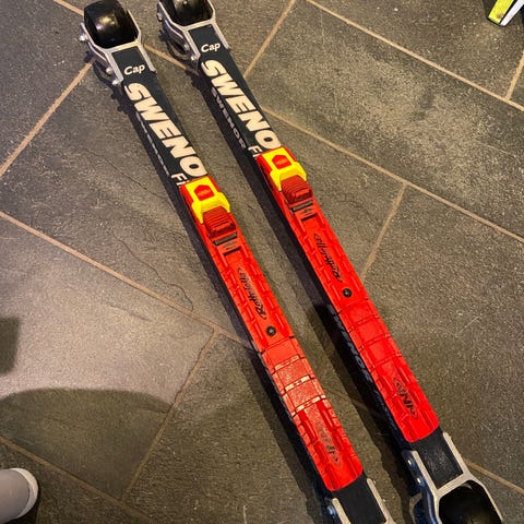 Veldig pene og gode Alpina skøyteski til langrenn. De gir god støtte og har en god passform. Topp sko for ambisiøse junior. De ble dessverre for små for fort, så er svært pent brukt.