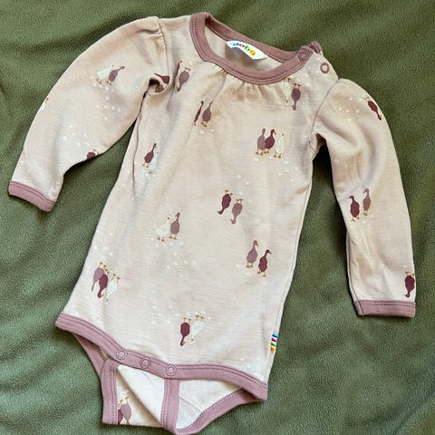 Omslagsbody i 100% merinoull fra Joha str 70 selges for 100 kr. Brukt kun noen få ganger, som ny. Beige/grønnaktig farge, vanskelig å få frem på bildene. Kan hentes i Veldre/Brumunddal eller sendes via Fiks ferdig.