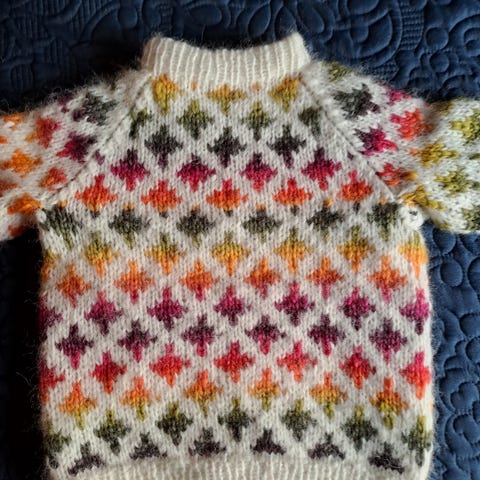 Artig mønster i lilla, rosa og grønn.