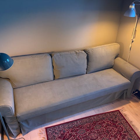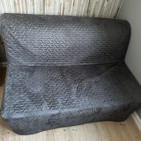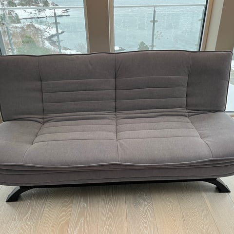 Praktisk og enkel sovesofa og dobbelt soveplass, med plass til sengetøy.