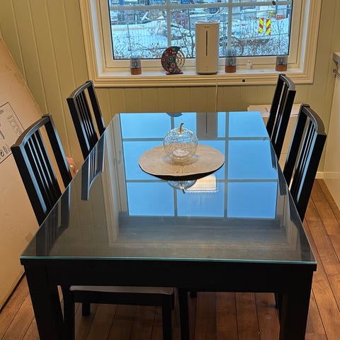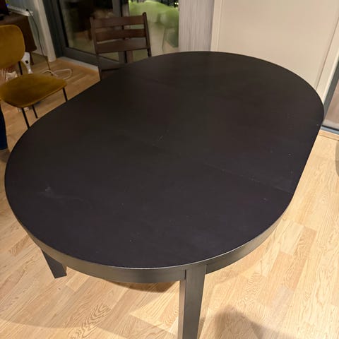 Selger vårt stødige IKEA Bjursta-bord etter å ha kjøpt nytt spisebord. Dette er lett å slå ut for middagsbesøk, og vi har trivdes godt med det!