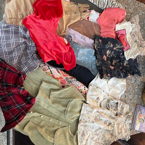 Klespakke 98-104. Her finner du kjoler,topper,bukser,gensere og diverse andre ting. Veldig pent brukt.