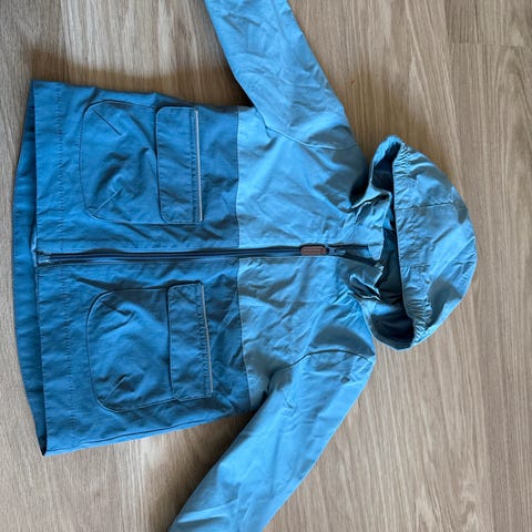Pent brukt newbie vårjakke i størrelse 98 . Ett pittelite merke som du nesten ikke kan se nederst på den ene siden av jakken .