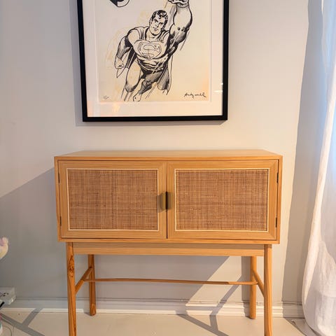 Kjøpt på Skeidar og bestilt glass bord på toppen. Skuffen er malt i grønnfarge.
