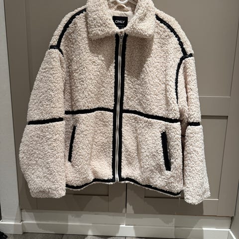 ONLY jakke i størrelse XL for dame. Jakken er beige og laget av fuskepelsmateriale.