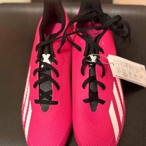 Adidas er små i størrelsen. Passer til str. 46/47. Adidas X Speedportal 2 FG fotballsko i svart med røde detaljer og grønne markeringer. De er i praksis ubrukte. Designet for fotballspillere med knotter under for godt grep på gressbaner.