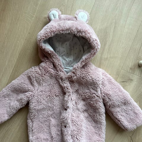 Rosa pusete jakke og lue med enhjørning! Str 98/104