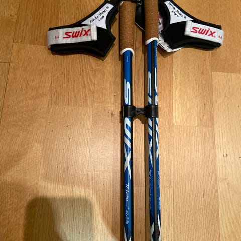Pent brukte skistaver i str 115 cm. Brukt 4-5 ganger.