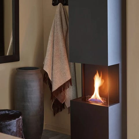 Tenderflame Alto 90 veggmontert peis i svart farge. Designet for innendørs bruk med enkel montering på vegg. Peisen gir en dekorativ flamme uten behov for skorstein eller elektrisitet.