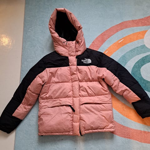 The North Face Annet yttertøy dunjakke i størrelse M for dame. Jakken er rød og laget med dun som isolasjonsmateriale.
