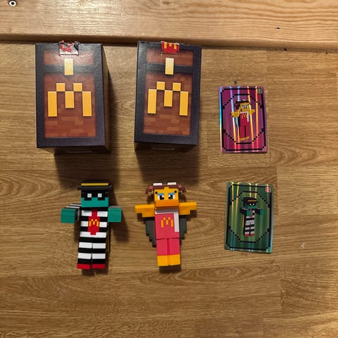 Minecraft figurer sett med 8 stk. Figuren inkluderer ulike karakterer og dyr fra Minecraft-universet, laget i metal. Passer som samleobjekter eller til lek.