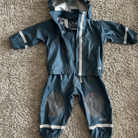 Regntøyet (størrelse 86) og støvlene (størrelse 21) fra Reflex selges. Settet er minimalt brukt, kun hatt som reserveløsning. Ny totalpris er ca : 1.100kr.