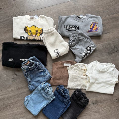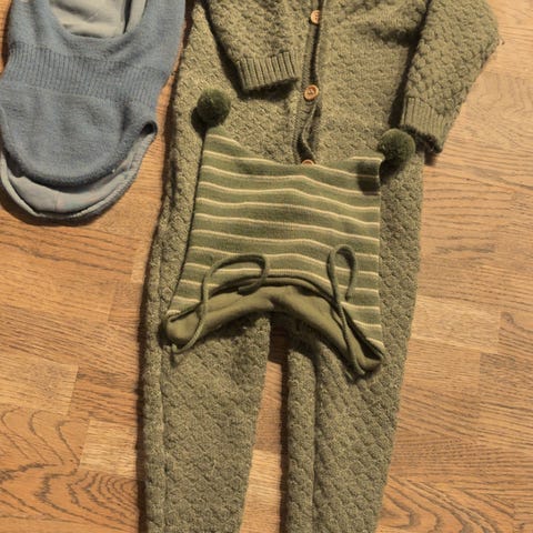Polarn O. Pyret barneheldress i størrelse 80, blå farge, laget av bomull. Passer for både gutter og jenter. Dressen har hette og glidelås foran, med stripete fôr på innsiden.