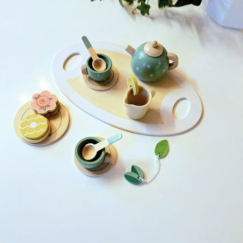 Rollelek. Lekekjøkken. Lekemat. Treleke. Kjøkkenlek. Lekekjøkken. Brødrister, brødskiver, speilegg, ost, smør, syltetøy, kniv, tallerken. Lage mat. Frokost. Montessori.